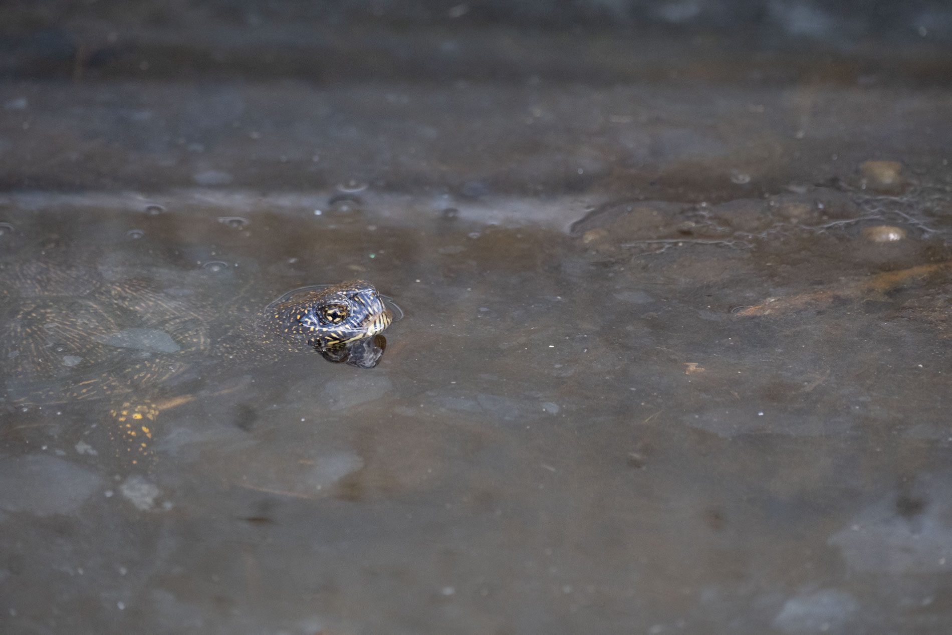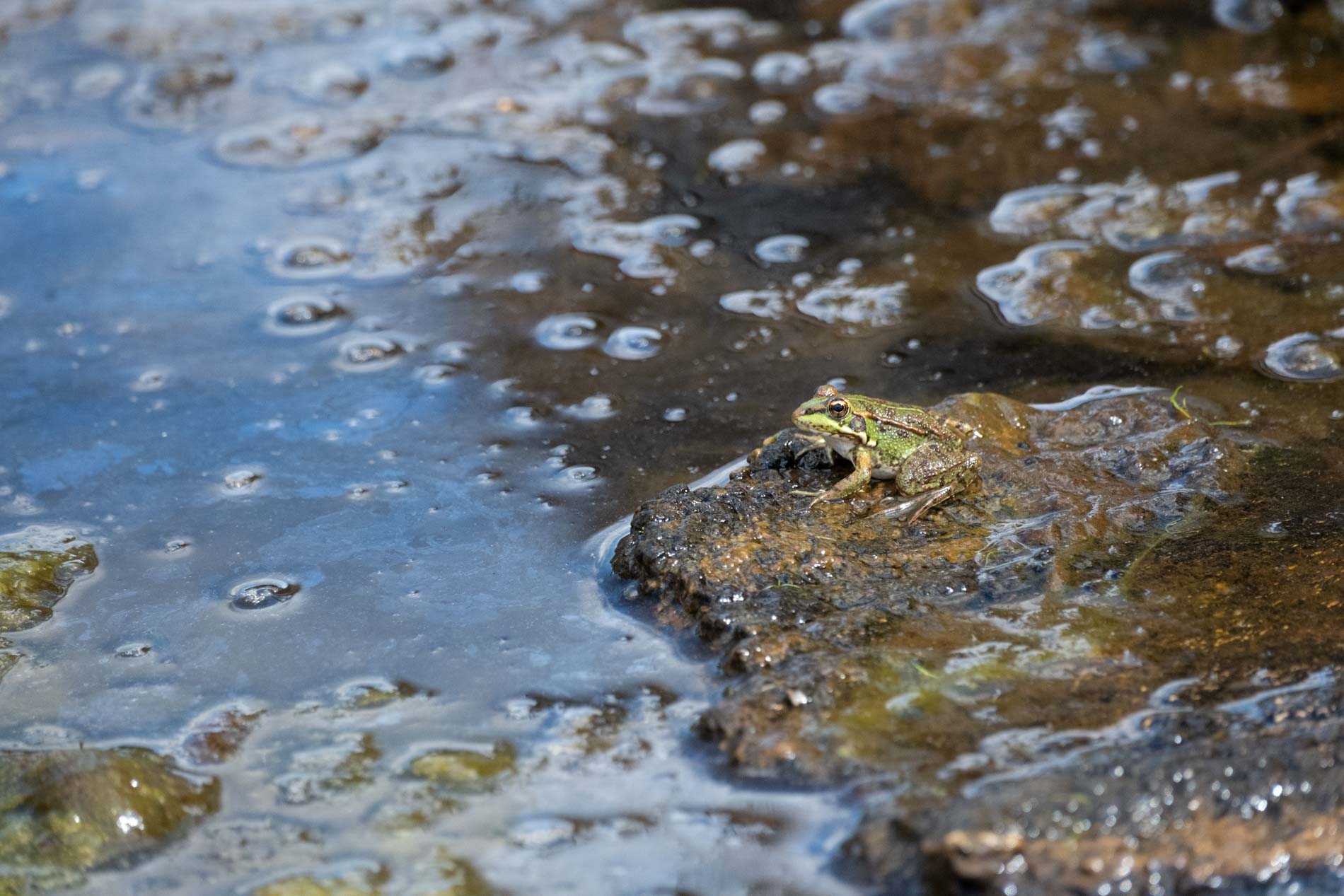 Near the visitor center, a European pond turtle surfaced, followed by a water frog in the swamp. Both were small, quick encounters but still grounding. Later, on the way out, we saw another deer with its back legs covered in mud. He must have found a place to cool down. I made one more photograph as he turned and looked back before moving behind the trees. It felt like the natural end of the day.